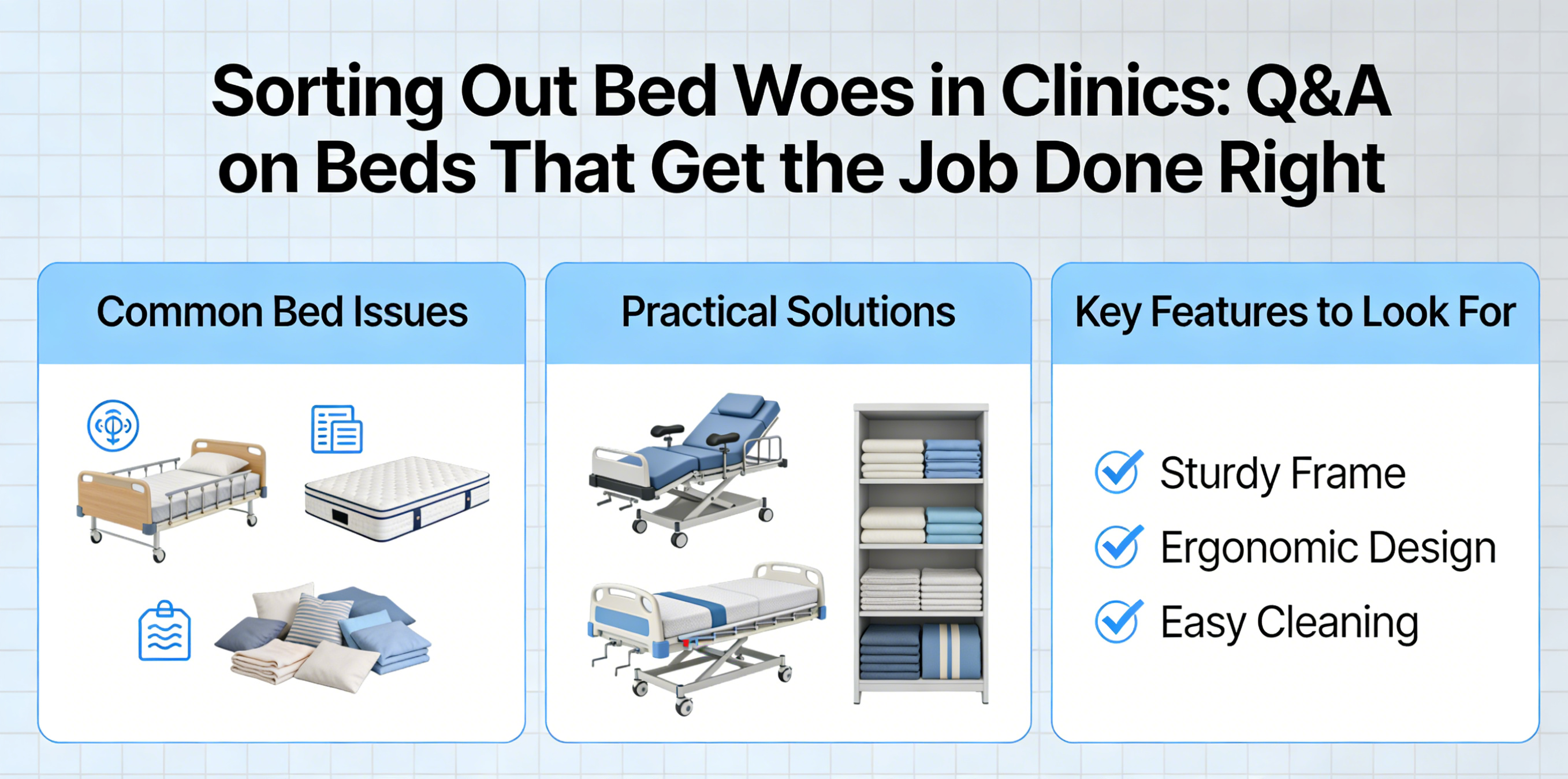 A: Picture this: you're running a clinic where every minute counts, and a dodgy bed can throw the whole day off. Our medical beds aren't flashy, but they nail the basics with sturdy raises that make exams a snap or lowers that keep patients from tripping up. It's all about ditching those old headaches like beds that stick or sag, so your team can hustle without the holdups, keeping patients moving and staff sane.